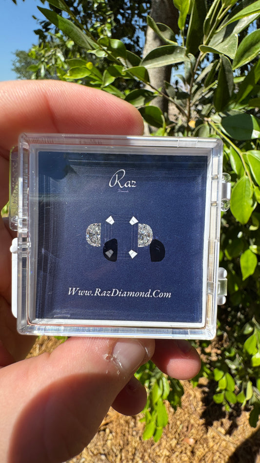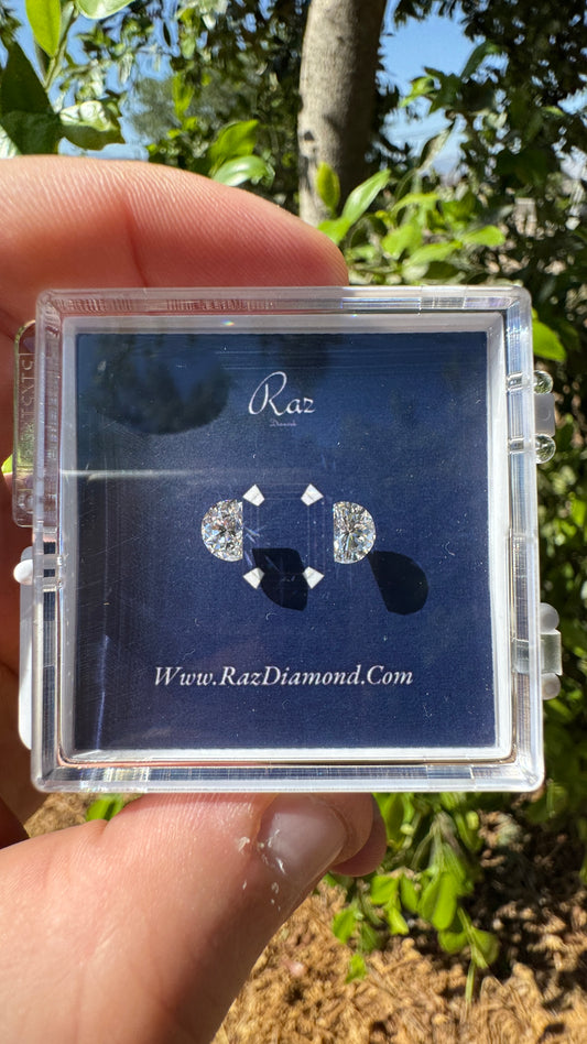 • 2St=1.10Ct Half Moon Cut Loose Natural Diamonds F-VS-SI | GIA